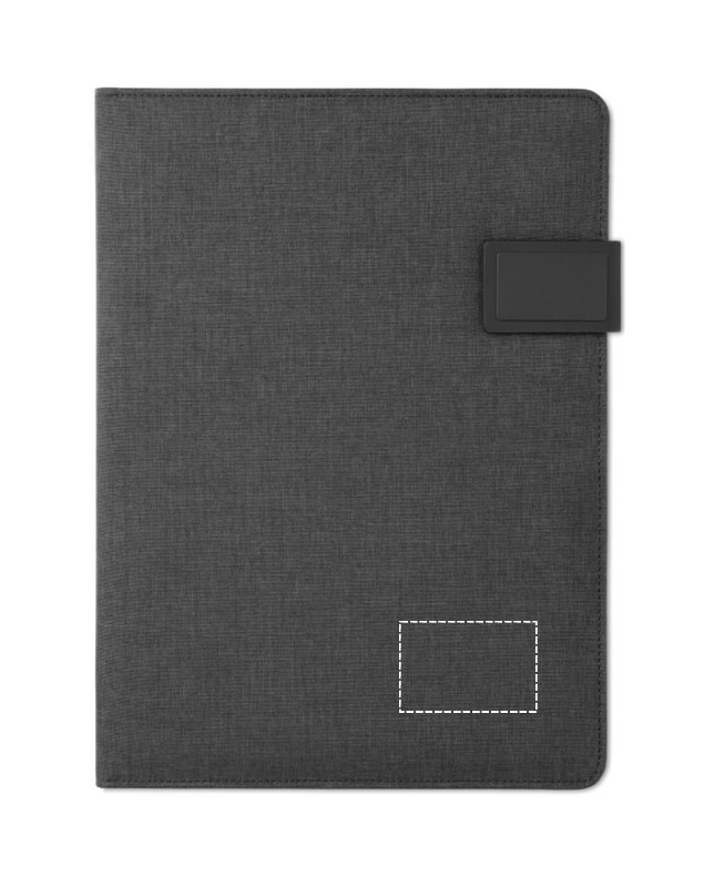 Teczka A4 z PU z magnetycznym zamknięciem i powerbankiem 4000mAh. Posiada wbudowane złącze micro USB -typ C . Zawiera notatnik 20stron i kilka wewnętrznych kieszeni.